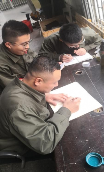 排面班组也不甘落后,由班长刘振华带领本班组成员学习。同样都拿出了认真的态度对待这次的学习。