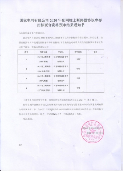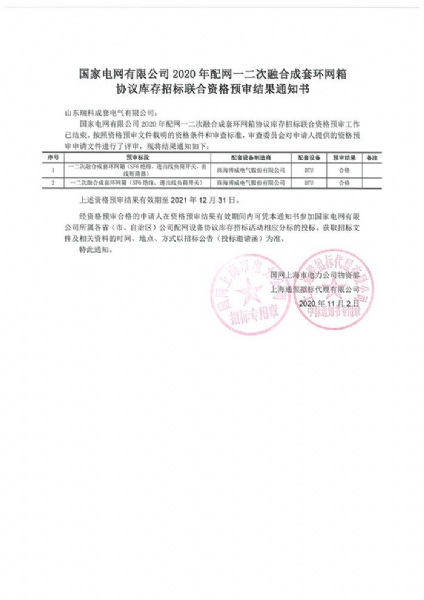 2023-10-102020年9月23日,我公司一二次融合断路器、一二次融合环网箱、标准化环网柜产品,通过国网公司由浙江省电力公司、福建省电力公司抽调专家组成审核小组,针对我公司资质业绩进行了现场核实。专家组对现场核实非常认真、深入和全面,覆盖审核了企业业绩、技术实力、认证证书、产品型式试验报告、生产、试验设备、生产工艺、生产环境、产品产能、售后服务机构和管理机构设置等内容。经过认真全方面资料的评审,专家组对我公司的生产、制造、研发等工作予以了高度评价和肯定,并给予提出一些宝贵性革新建议。此次喜获2020年度《供应商资质能力核实联合预审结果通知书》、《资质业绩凭证》标注着我公司,符合国网组织的配网库存协议招标的资格,为公司下步参与国网集中招标活动起到重要支撑,也是公司获取国家电网公司招标项目的“敲门砖”也表明我公司产品和实力得到了国家国网公司的充分认可。